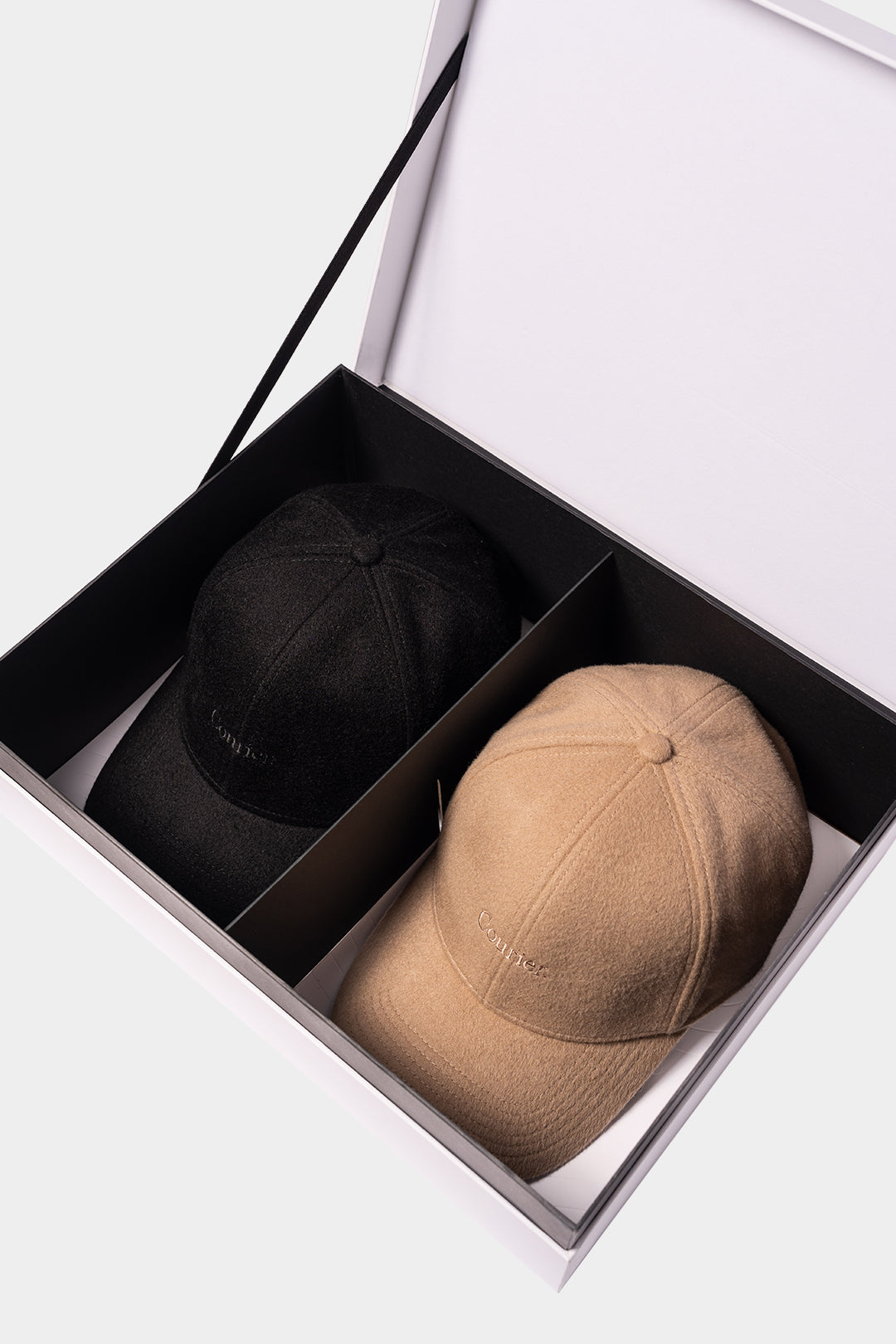 Our Duo Pack of premium wool caps, featuring one in light camel and one in classic black. Crafted from ultra-soft, high-quality wool, each cap offers cozy warmth and a refined, timeless appeal.