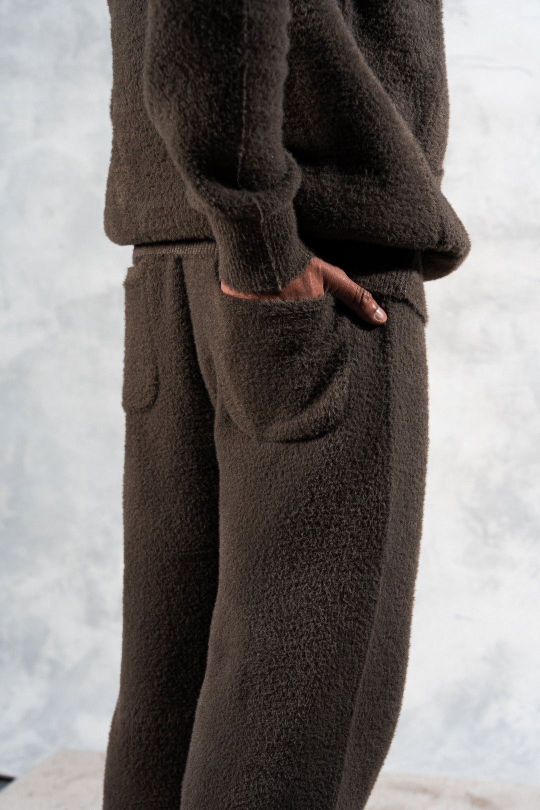 Ergänzend zur Weste gibt es die passenden Lounge-Hosen mit ähnlich flauschiger Textur, angenehm verlängerter Länge, Gesäßtaschen und einem Design, das bequem über die Schuhe passt.