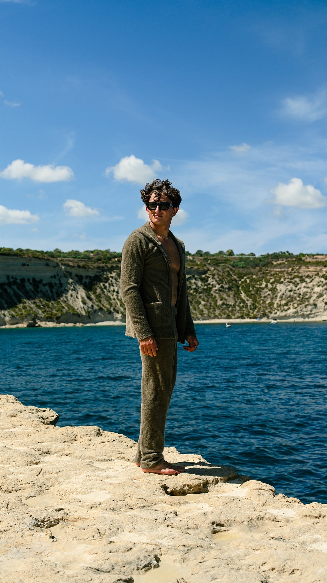 Der Taupe Lounge Suit ist ein luxuriöses und bequemes Ensemble, perfekt sowohl zum Entspannen als auch für zwanglose Ausflüge.
