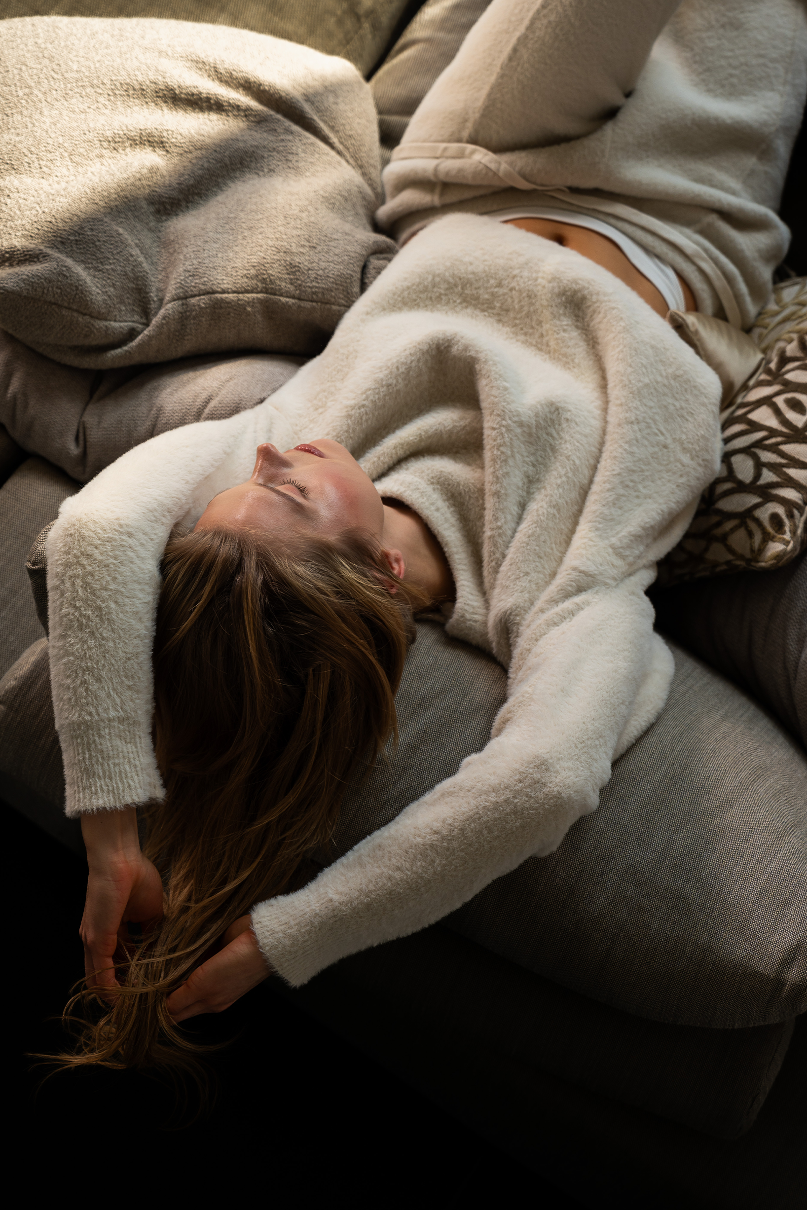 Wende-Rundhalsausschnitt in Taupe, flauschig