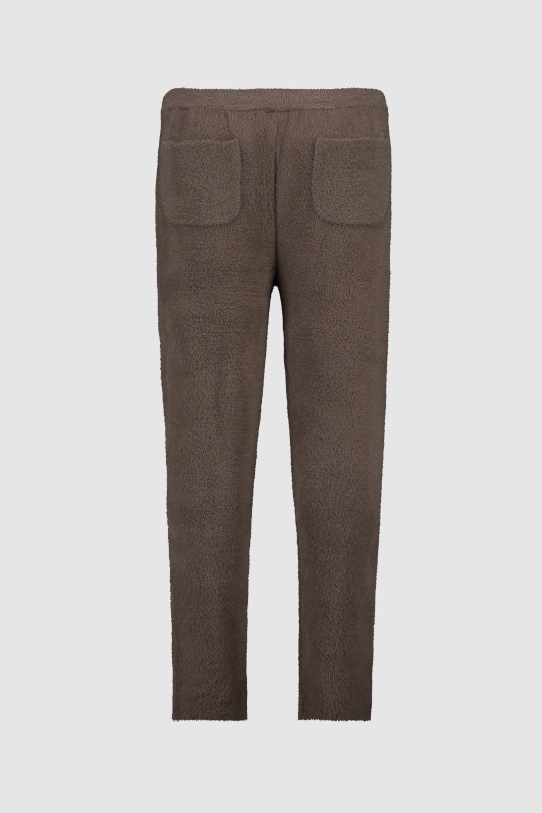 Unsere taupefarbenen Lounge-Hosen mit weicher, flauschiger Außenseite, bequemer Baumwollinnenseite, längerem Schnitt, zwei markanten Gesäßtaschen und so konzipiert, dass sie bequem über Schuhe passen.