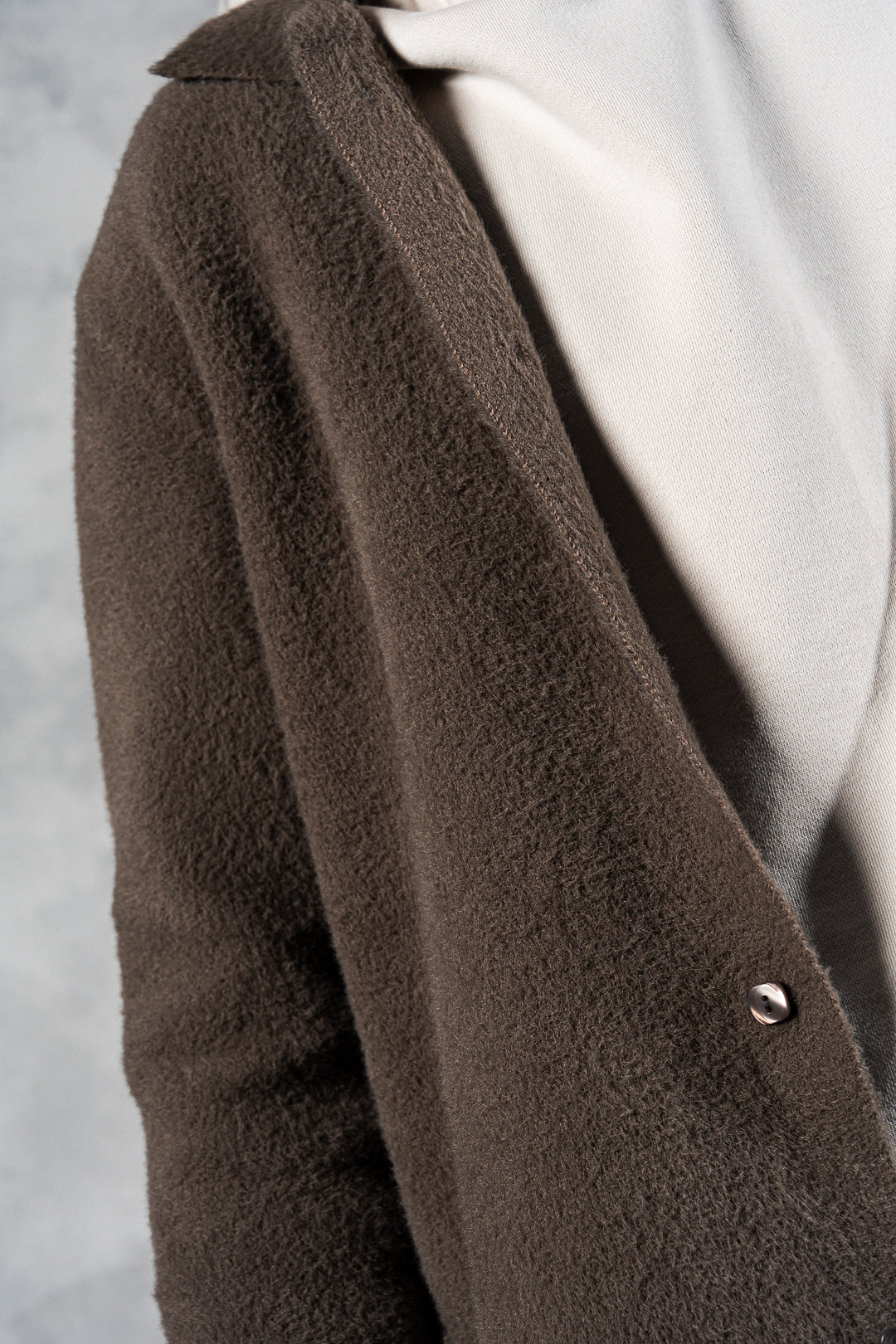 Unser taupefarbenes, flauschiges Hemd mit luxuriös weicher und warmer flauschiger Textur bietet sowohl Komfort als auch Stil. Ob Sie Sommernächte genießen, auf Reisen sind, zu Hause entspannen oder schicke Abendessen genießen, dieses vielseitige Stück ist perfekt für jeden Anlass. Seine immense Vielseitigkeit ermöglicht endlose Styling-Möglichkeiten und macht es zu einem unverzichtbaren Kleidungsstück für alle Ausflüge.
