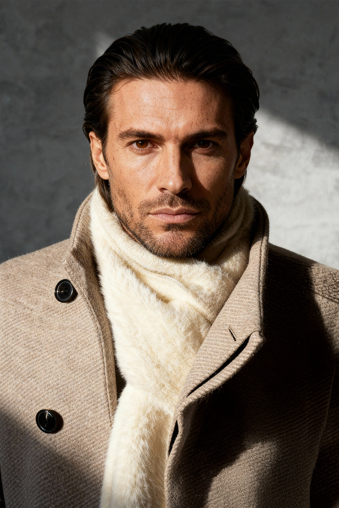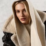 Our Vanilla White Scarf featuring a luxurious, soft fluffy texture on both sides. for a elegant and cozy feel, perfect for enhancing both your style and comfort.