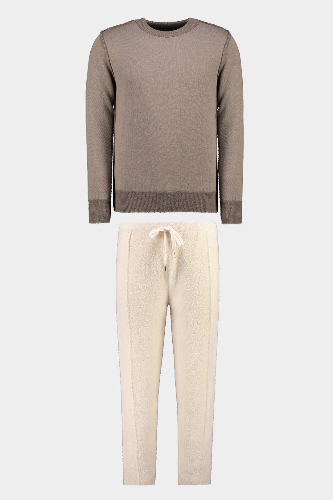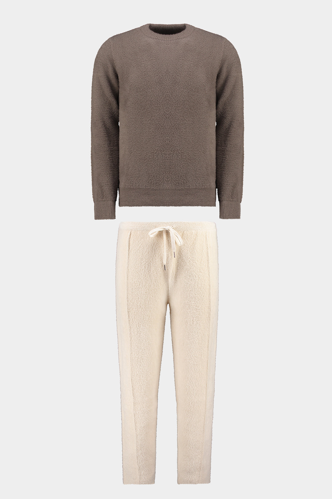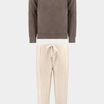 Women's Fluffy Reverse Crew Suit Taupe/Vanilla-White