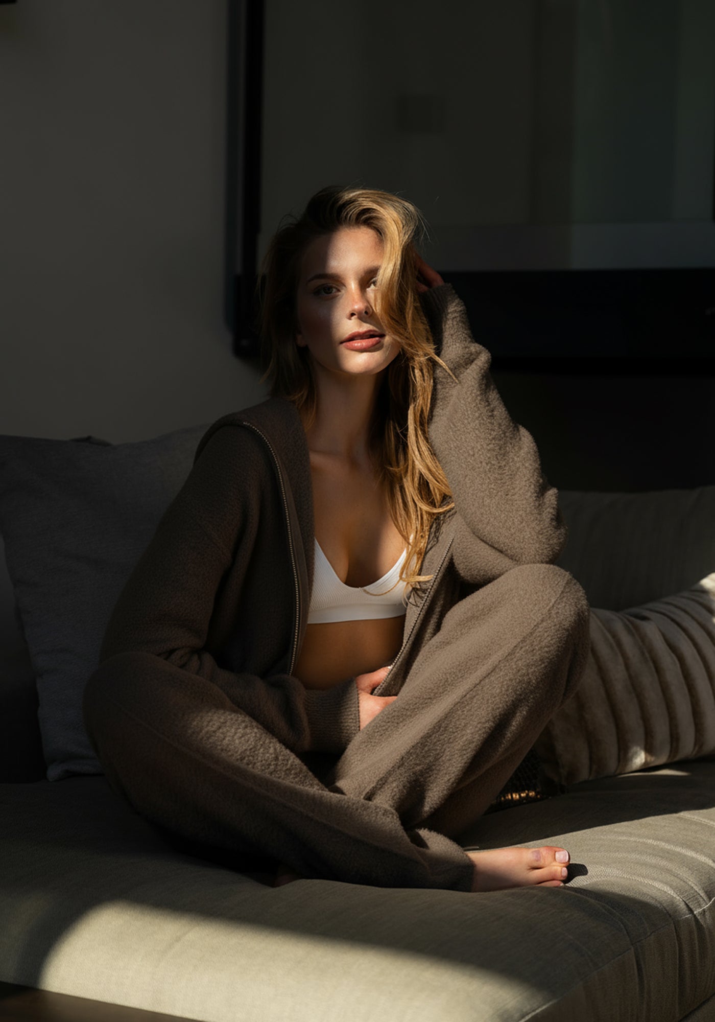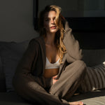 Paired with our Taupe Lounge Pants, you'll experience the ultimate in luxury. These pants feature a soft, fluffy outer layer and a cozy cotton interior, providing a luxurious feel. With an extended length style and two prominent back pockets, they offer both functionality and fashion.